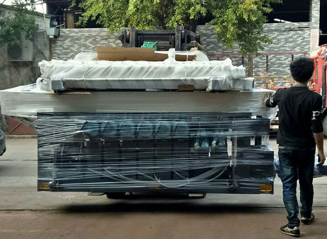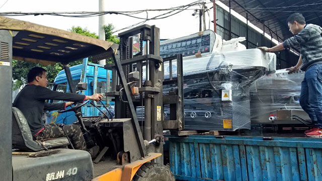 一臺9頭石材磨邊機、9頭玻璃直線磨邊機發往海口
