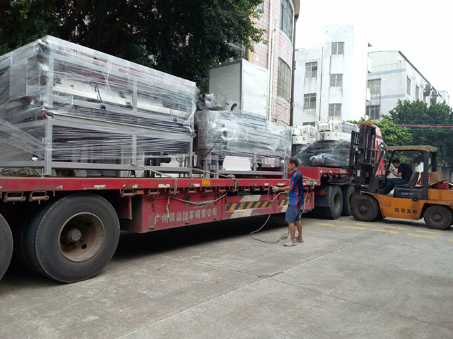2018年8月21日 四臺(tái)九頭直線磨邊機(jī)兩臺(tái)翻轉(zhuǎn)機(jī)一臺(tái)兩米五清洗機(jī)發(fā)往雷州